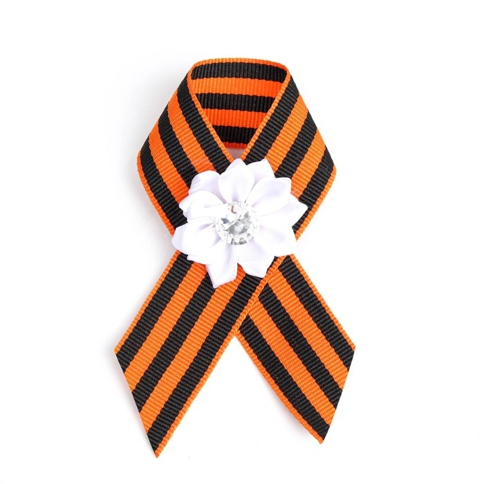 Брошь - георгиевская лента "9 мая - Орден Победы", белый цветок