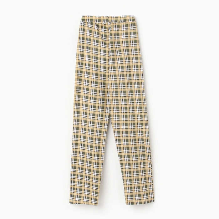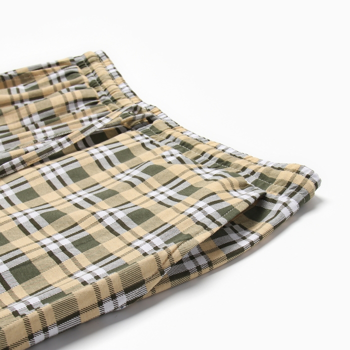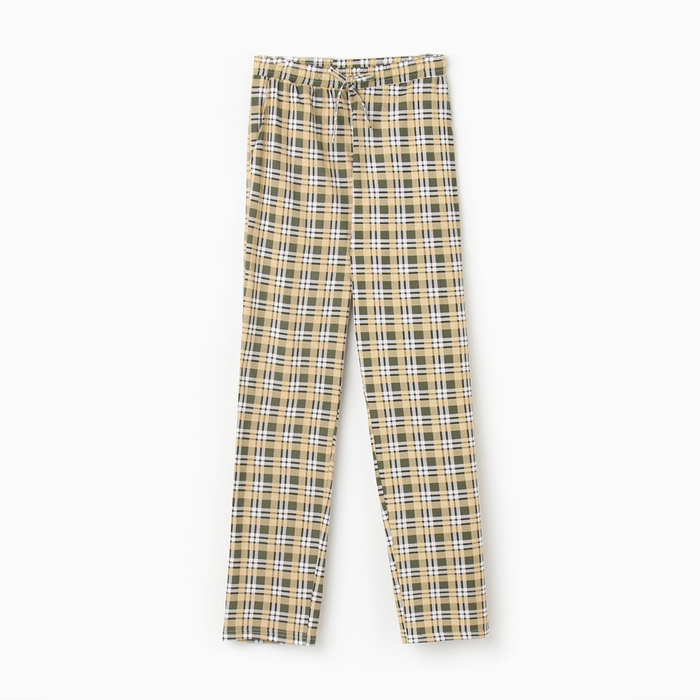 Брюки домашние мужские, цвет желто-зелено-белая клетка, размер 48
