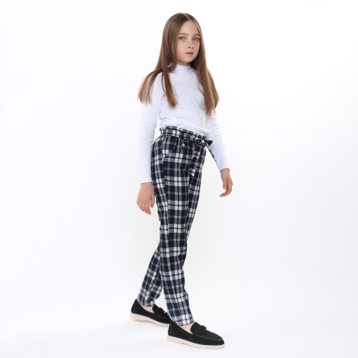 Брюки школьные для девочек, цвет тёмно-синий, рост 164 см