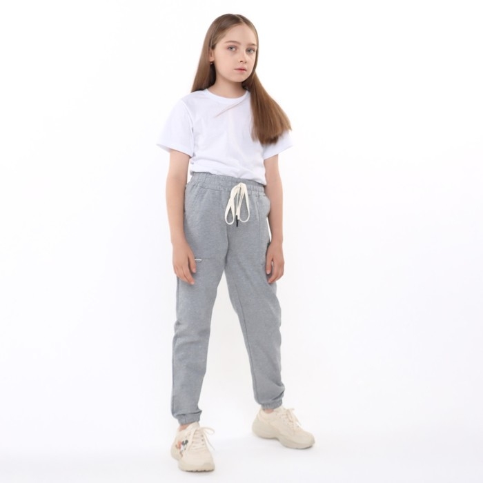 Брюки спортивные для девочек, цвет серый, рост 146 см