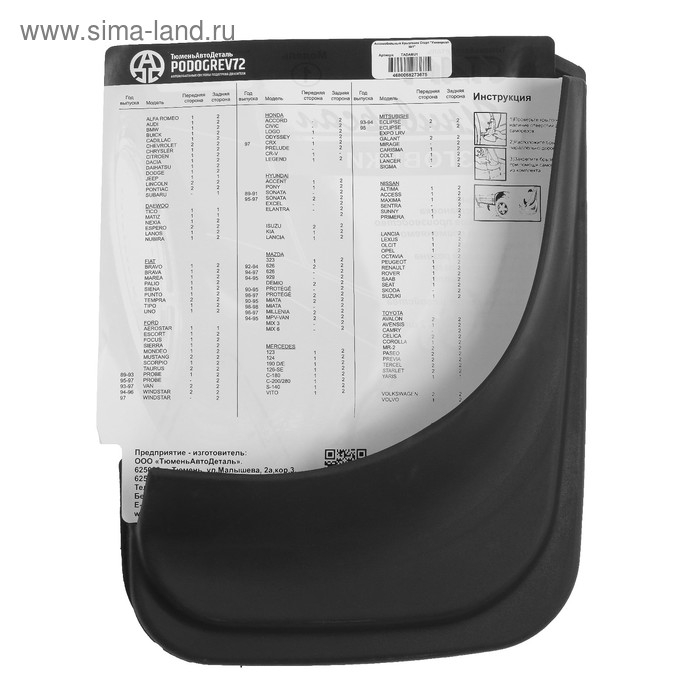 Брызговики универсальные ТюменьАвтоДеталь, 22 х 31 см, резина, чёрные, набор 2 шт