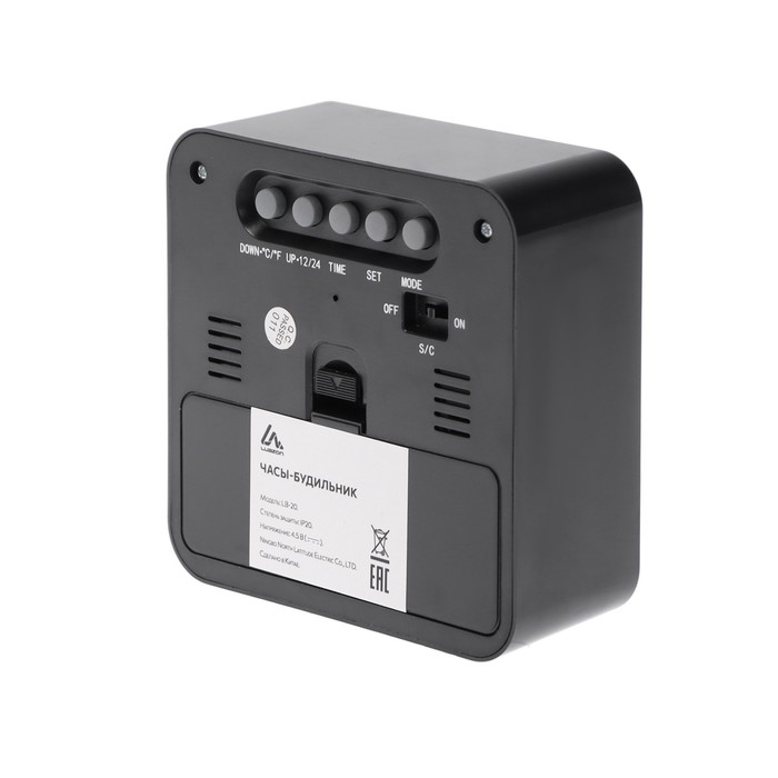 Будильник Luazon LB-20, температура, подсветка срабатывает от хлопка, черный