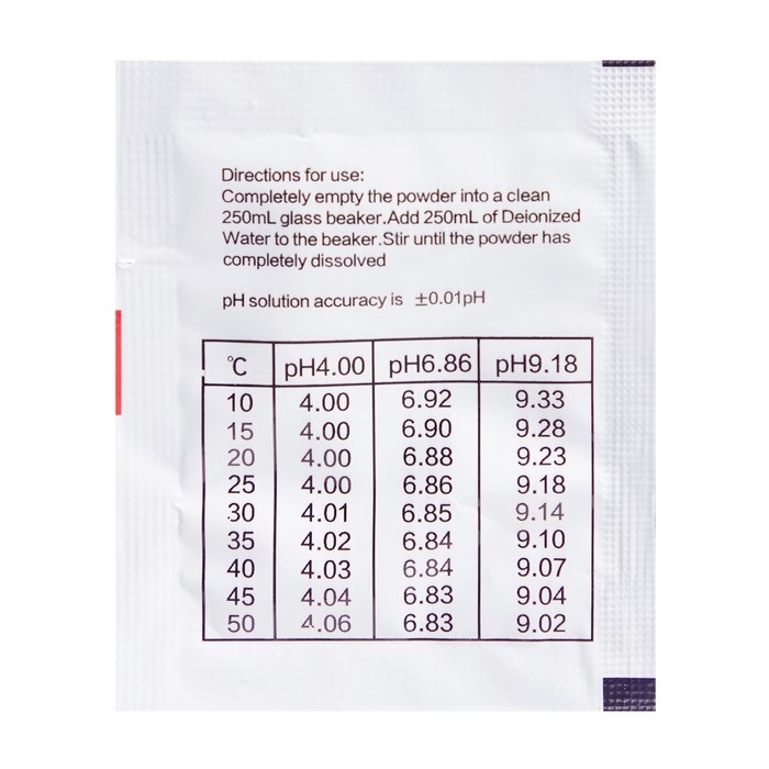 При помощи буферных порошков вы сможете регулярно корректировать точность своего PH метра, что обеспечит ему более длительный срок службы, а также сократит погрешность показаний при исследованиях.