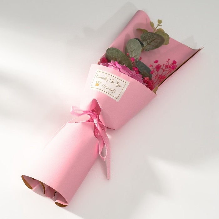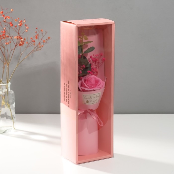 Букет из мыльных лепестков "Роза и эвкалипт" розовый 7,5х11х34,5 см