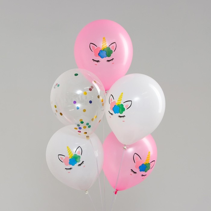Букет из шаров 12" «Единорог», конфетти, латекс, лента, набор 5 шт.