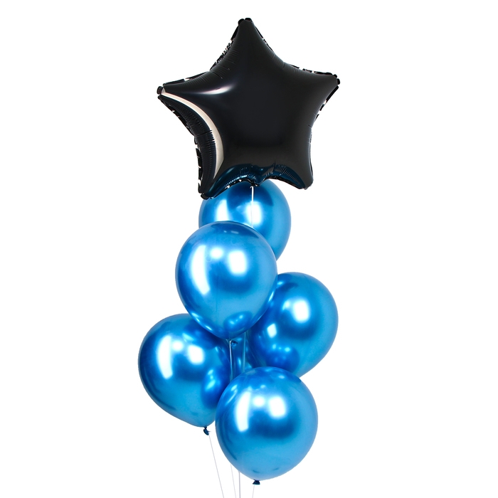Букет из воздушных шаров «Звезда» синий хром, набор 7 шт.