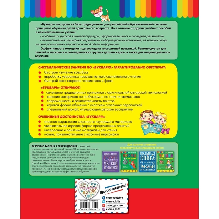 «Букварь» Ткаченко Т.А. представляет собой сборник заданий и текстов, позволяющих ребёнку овладеть чтением на уровне требований школы, а также избежать характерных ошибок.