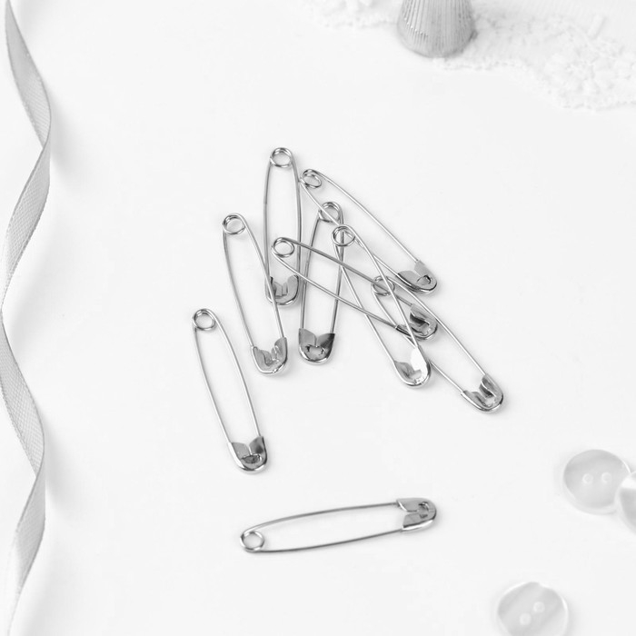 Булавки английские, 44 мм, 10 шт, цвет никель