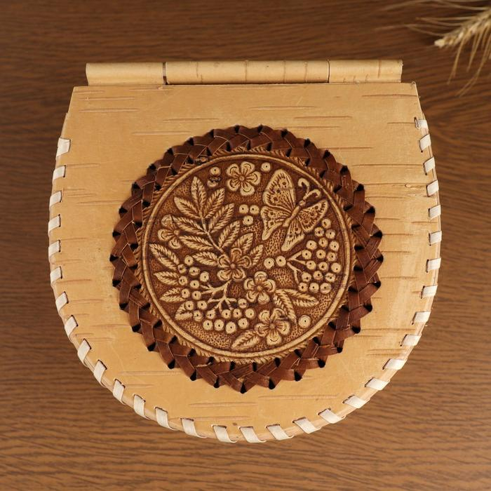 Булочница пристенная "Бабочка в рябине", 16х15х15,5см, береста