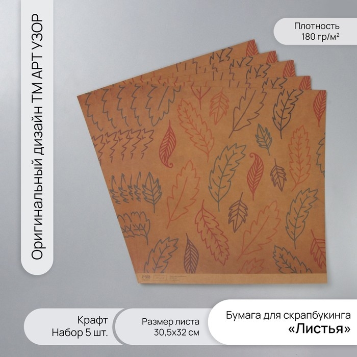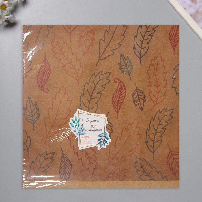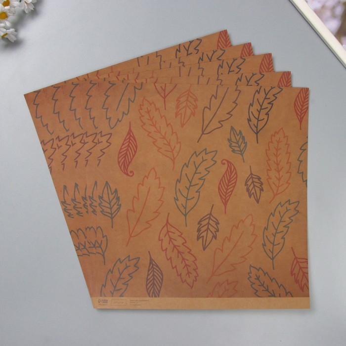 Бумага для скрапбукинга крафт "Листья" плотность 180 гр набор 5 шт 30,5х32 см