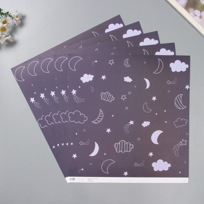 Бумага для скрапбукинга "Магия ночного неба" плотность 180 гр набор 5 шт 30,5х32 см