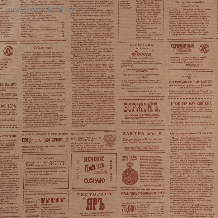 Бумага упаковочная крафт "Винтажная газета", коричневая, 0,72 х 10 м, 50 г/м²