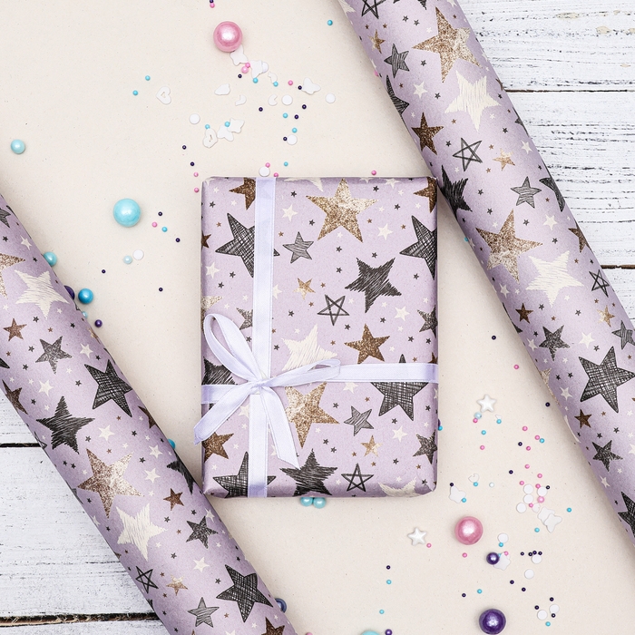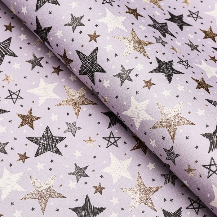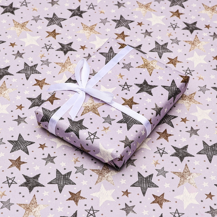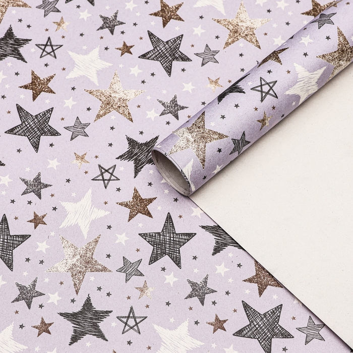 Бумага упаковочная, крафт "Звезды", 70 х 100 см, 1 лист