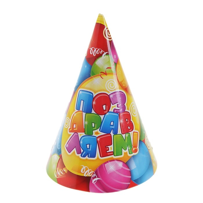 Бумажные колпаки «Поздравляем», набор 6 шт., 16 см