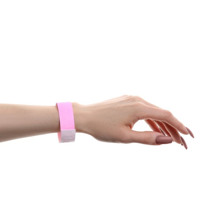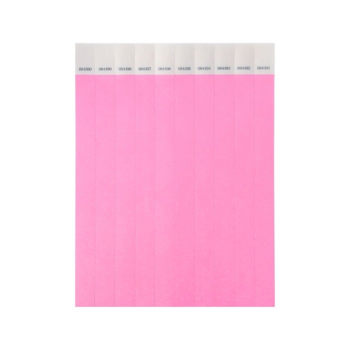 Бумажный контрольный браслет "Розовый неоновый" TYVEK 100 штук