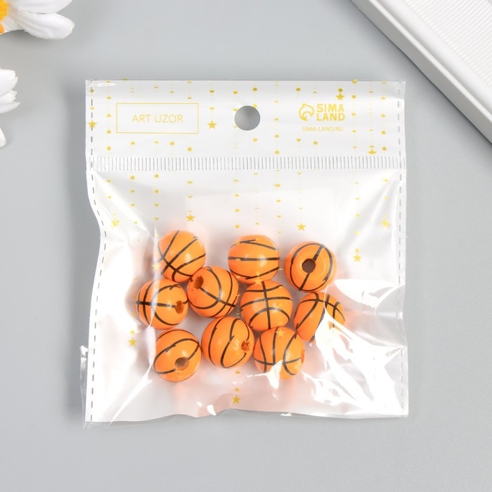 Бусина дерево для творчества "Баскетбольный мяч" d=1,6 см набор 10 шт