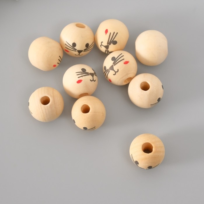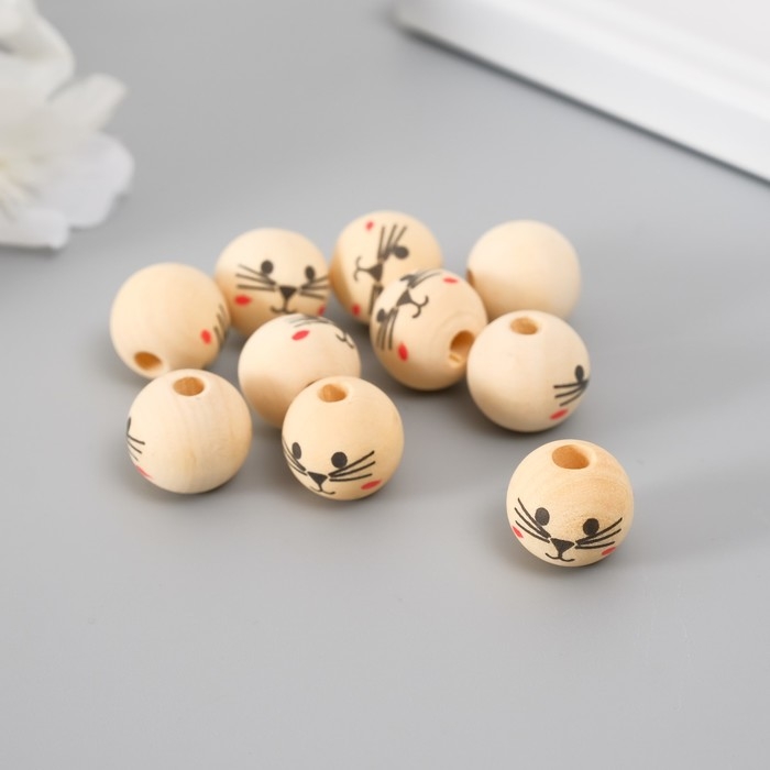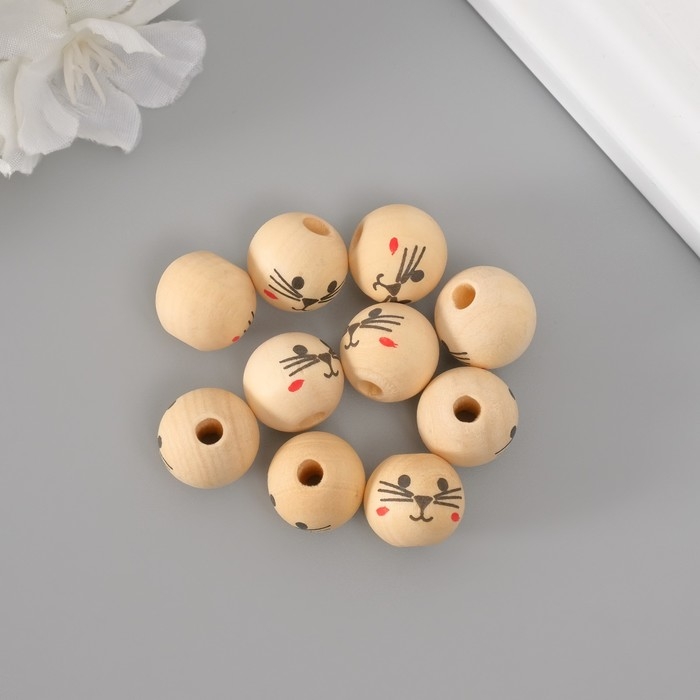 Бусины для творчества дерево "Мордочка котика" набор 10 шт d=1,6 см