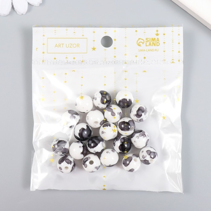 Бусины для творчества пластик "Брызги краски. Серый на белом" набор 20 гр 1,2х1,2 см