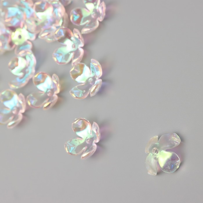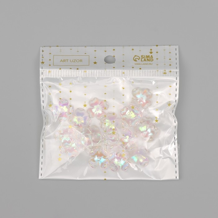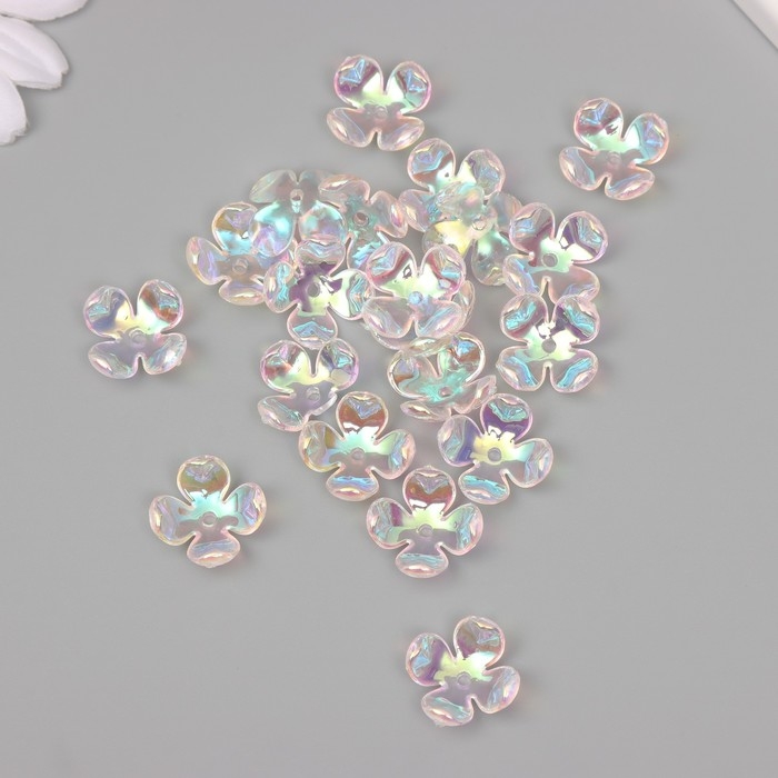 Бусины для творчества пластик "Четырёхлистный цветок" набор 20 шт прозрачный перл. 1,6х1,4 см 9104