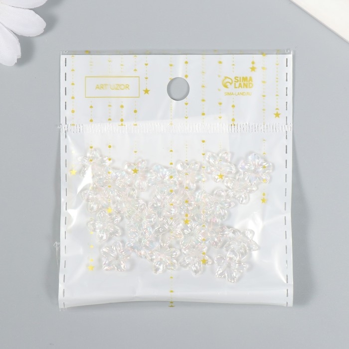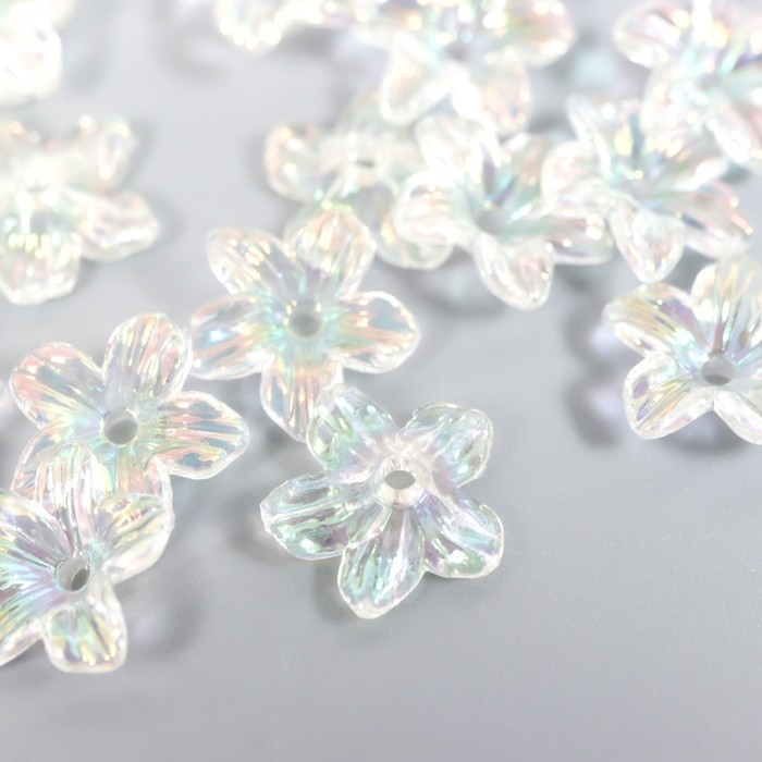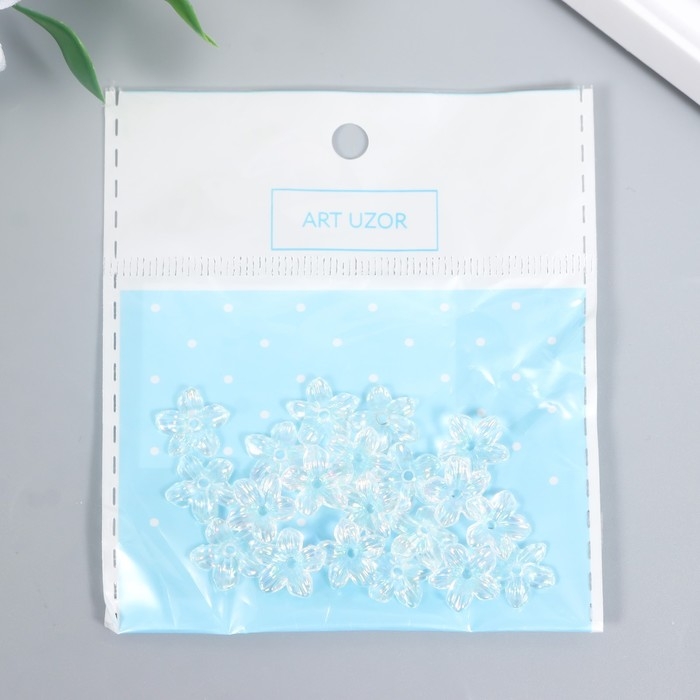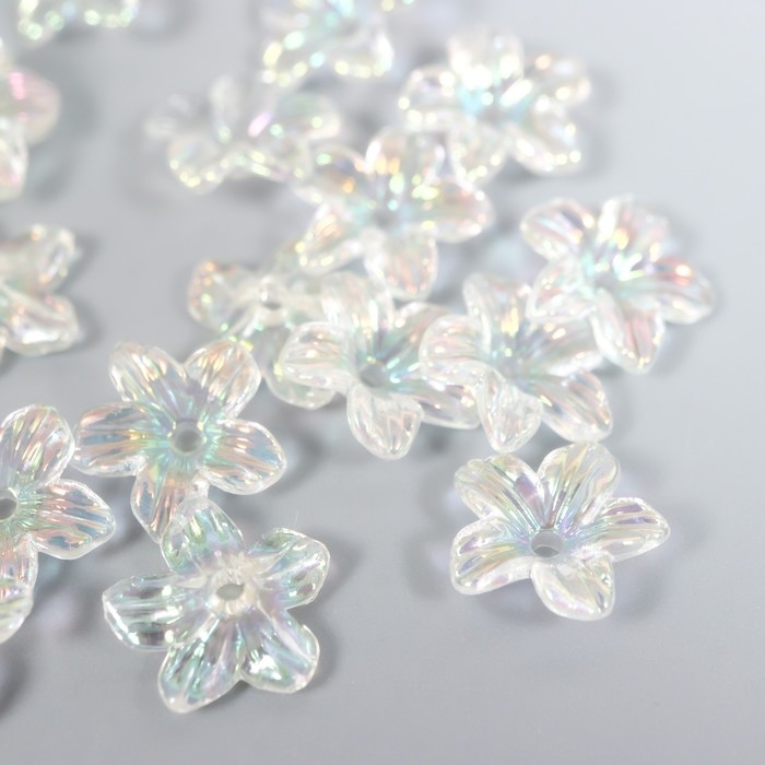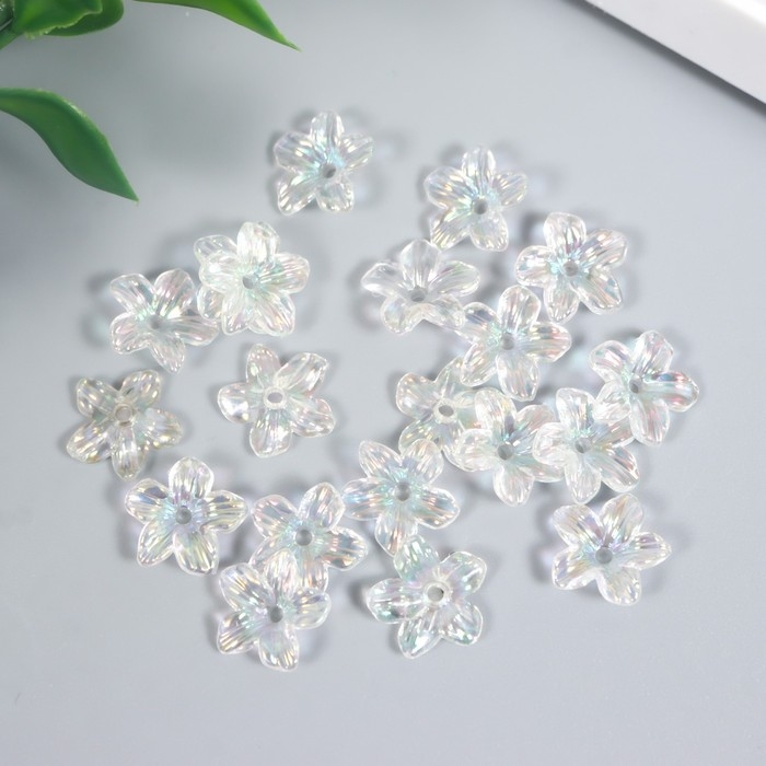 Бусины для творчества пластик "Цветок" набор 25 шт прозрачный перламутр 1,1х1,1 см