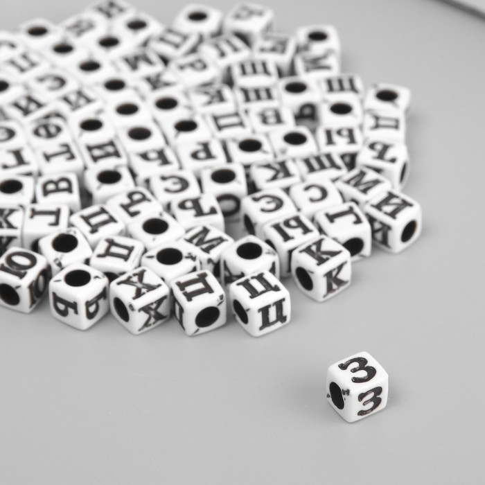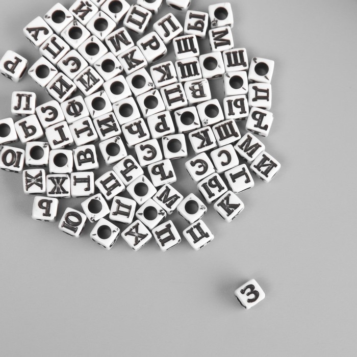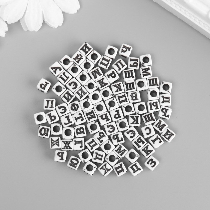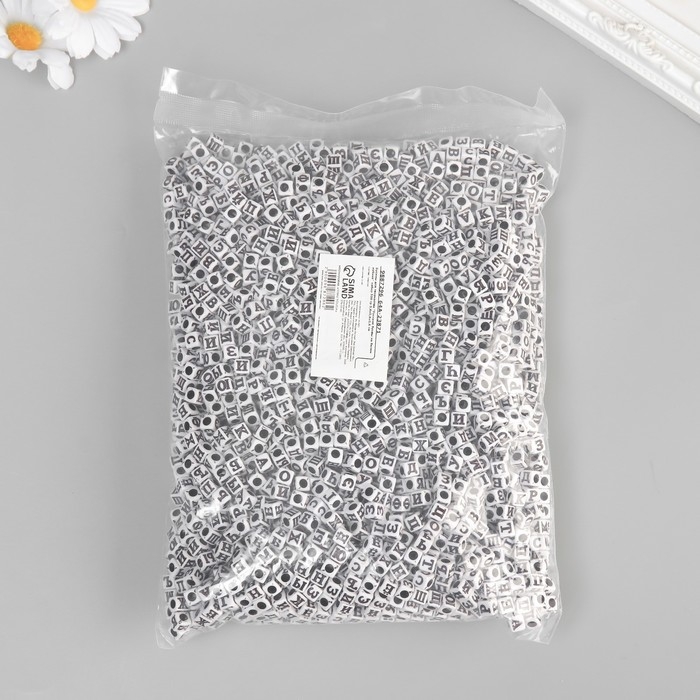 Бусины для творчества пластик "Русские буквы на белом кубике" набор 500 гр 0,6х0,6х0,6 см