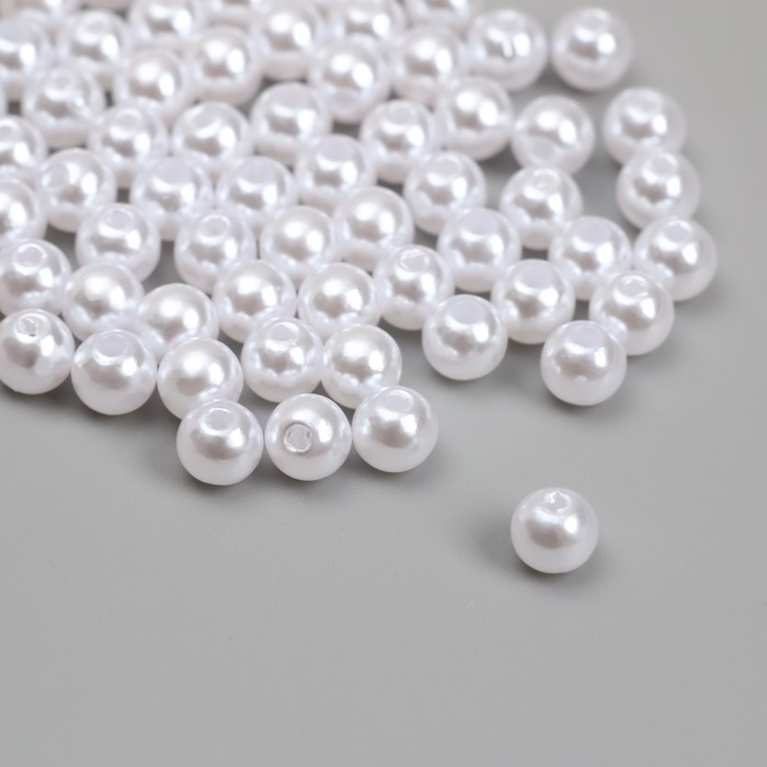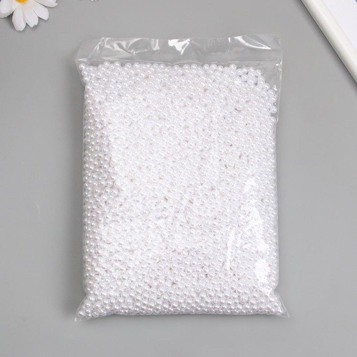 Бусины для творчества пластик "Жемчуг белый" d=0,6 см набор 500 гр