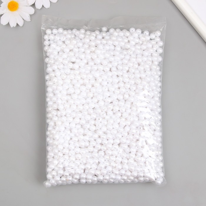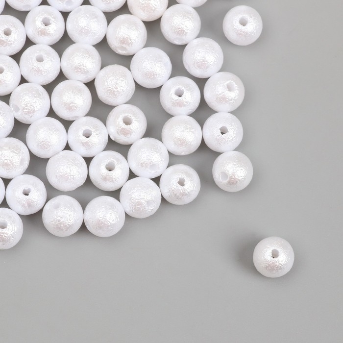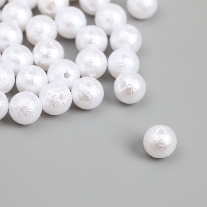 Бусины для творчества пластик "Жемчуг белый шершавый" d=0,8 см набор 500 гр