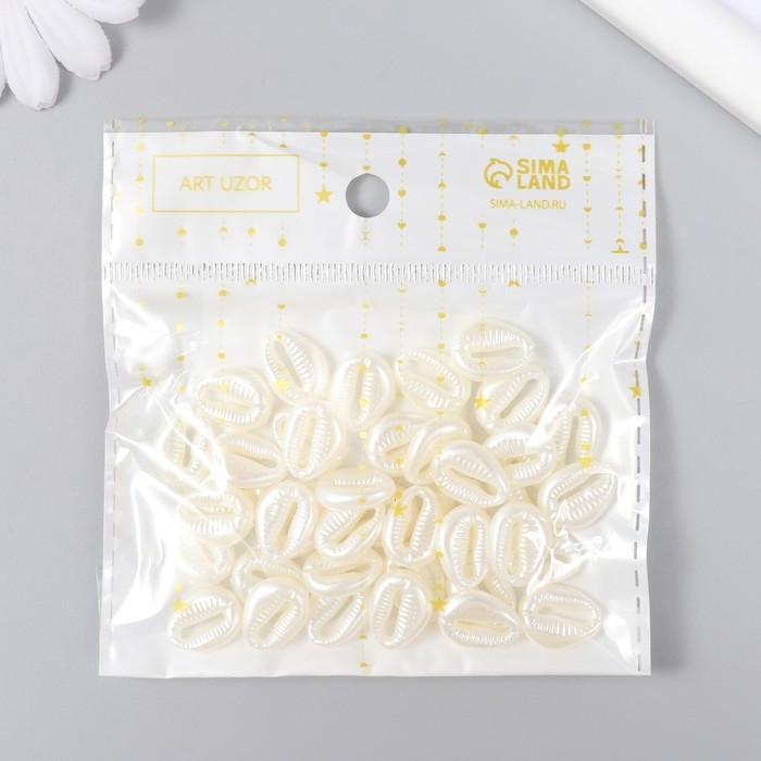 Бусины для творчества пластик "Жемчужные инвалютные ракушки" набор 40 шт 0,5х1,2х1,5 см