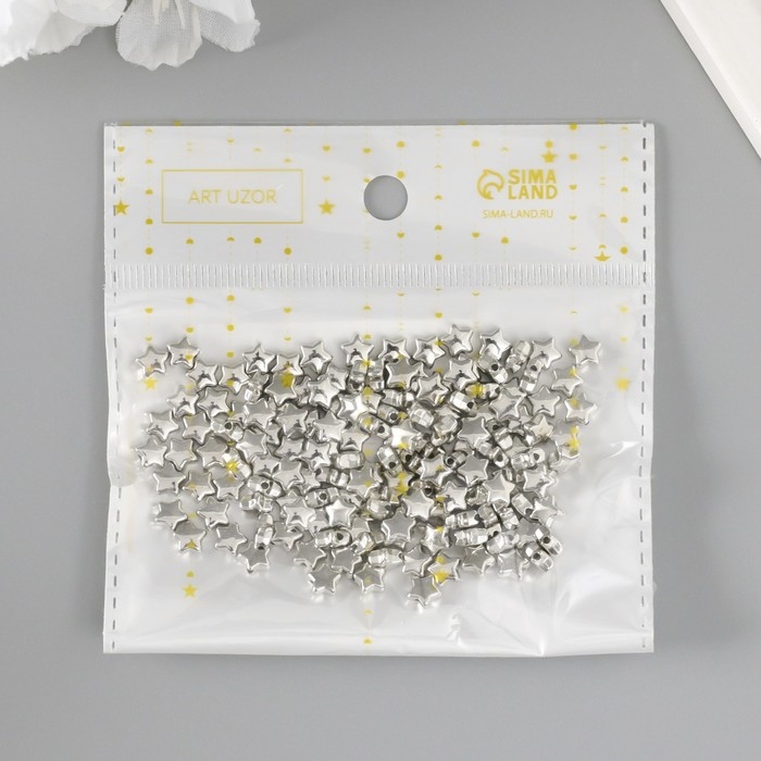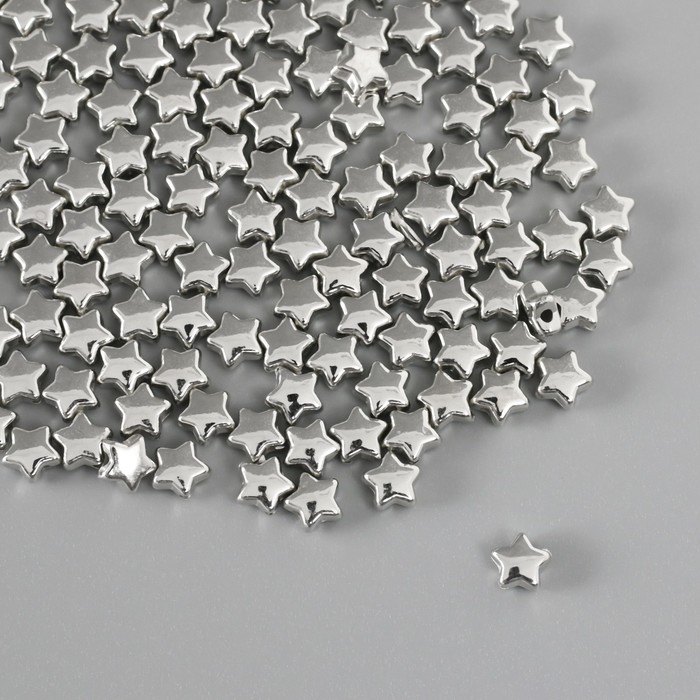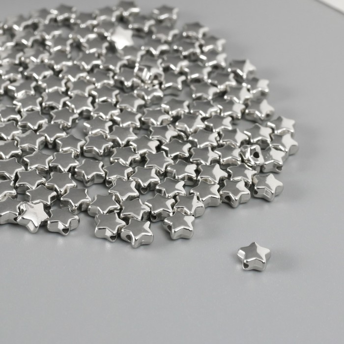 Бусины для творчества пластик "Звёзды" набор 150 шт серебро 0,6х0,6х0,4 см