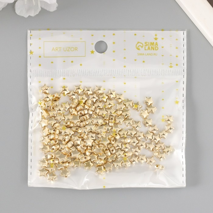Бусины для творчества пластик "Звёзды" набор 150 шт золото 0,6х0,6х0,4 см