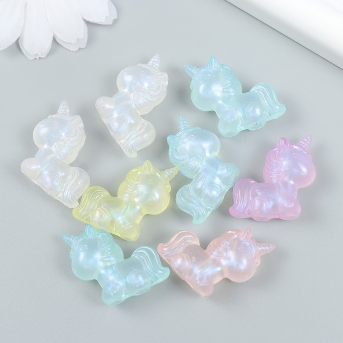 Бусины пластик "Единороги. Цветные, полупрозрачные" набор 25 гр МИКС 1,1х2,7х2,7 см