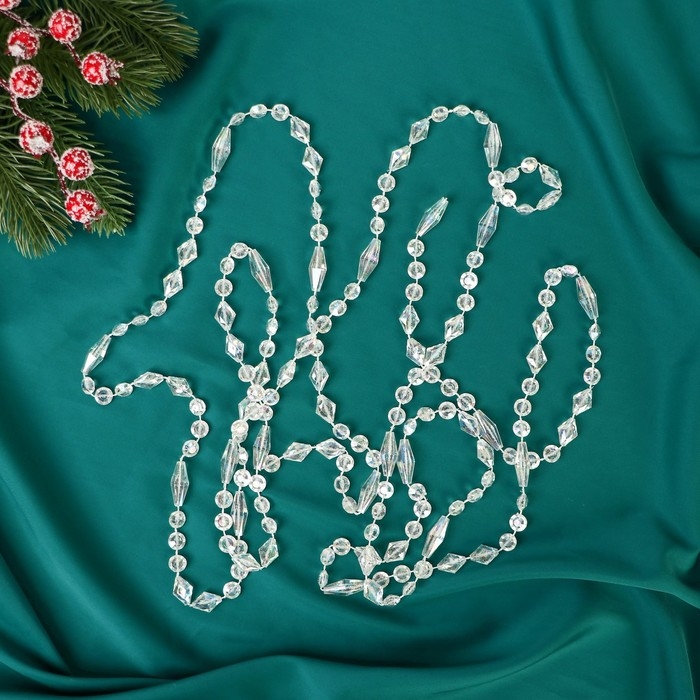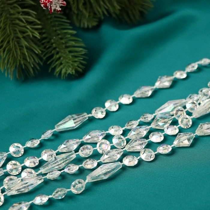Бусы на ёлку 2,7 м d-9 мм "Льдинка" ромбик три диска, прозрачный перламутр