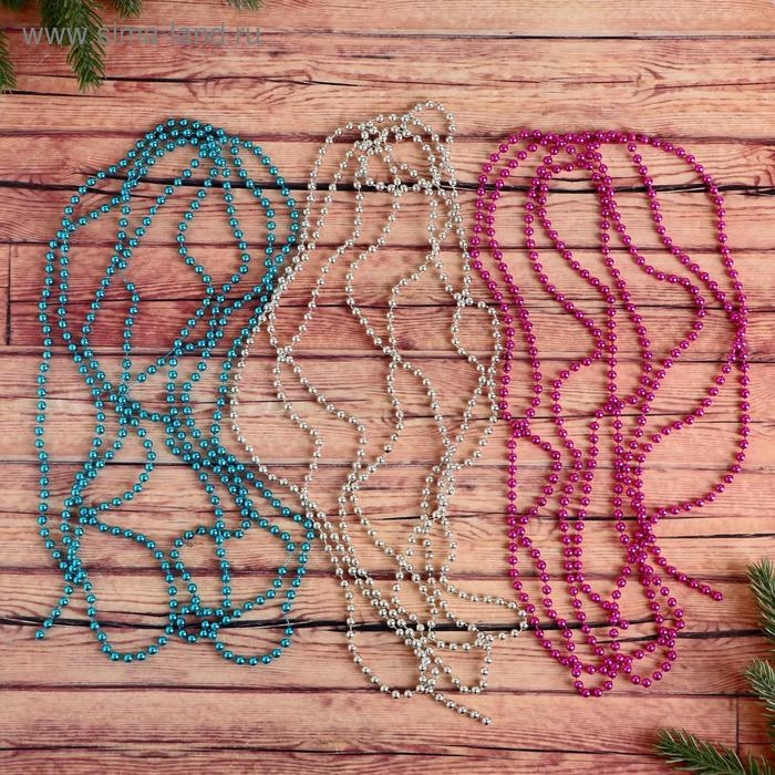 Бусы на ёлку 2,7 м "Разноцветные шарики" (набор 3 шт) d-5 мм, микс