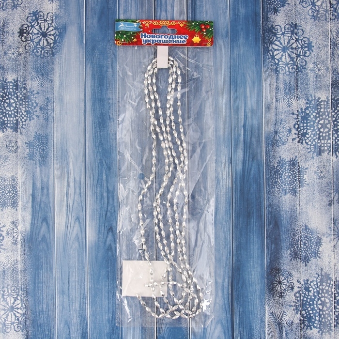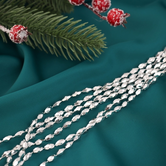 Бусы на ёлку 2 м d-3 мм "Овалы грани" серебро