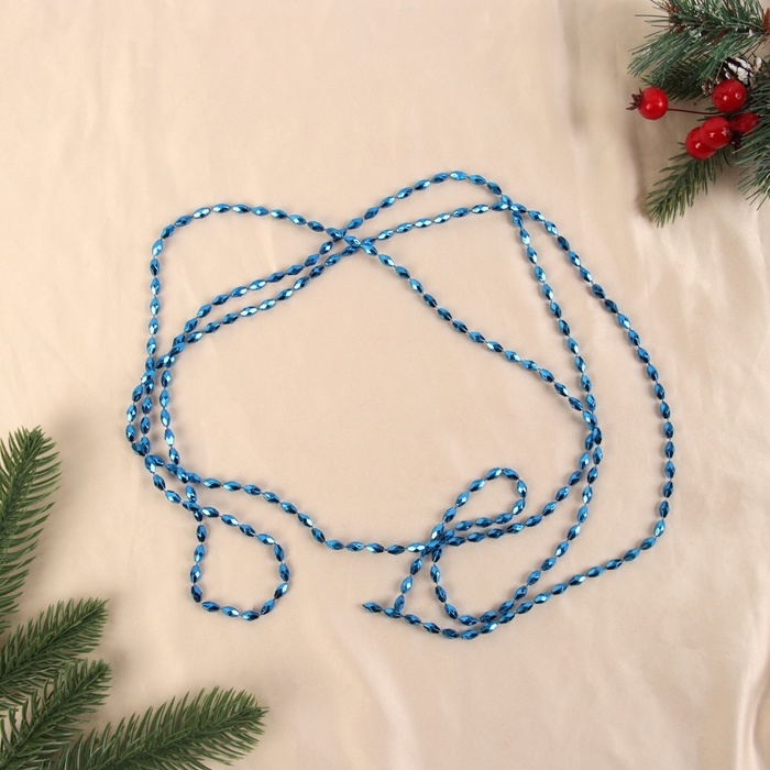 Бусы на ёлку 2 м d-3 мм "Овалы грани" синий