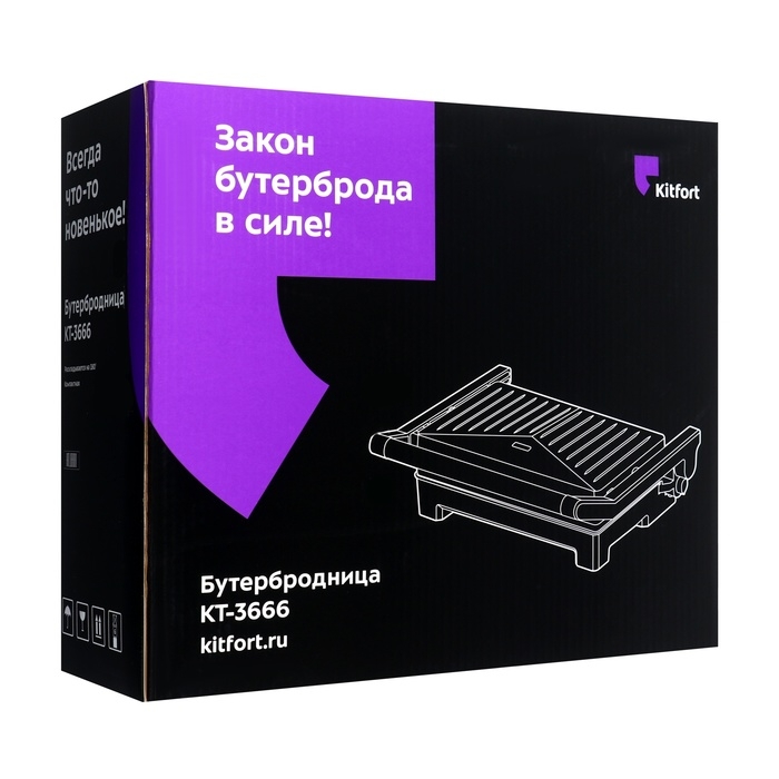 Бутербродница Kitfort КТ-3666, 800 Вт, 27.1х23 см, чёрная