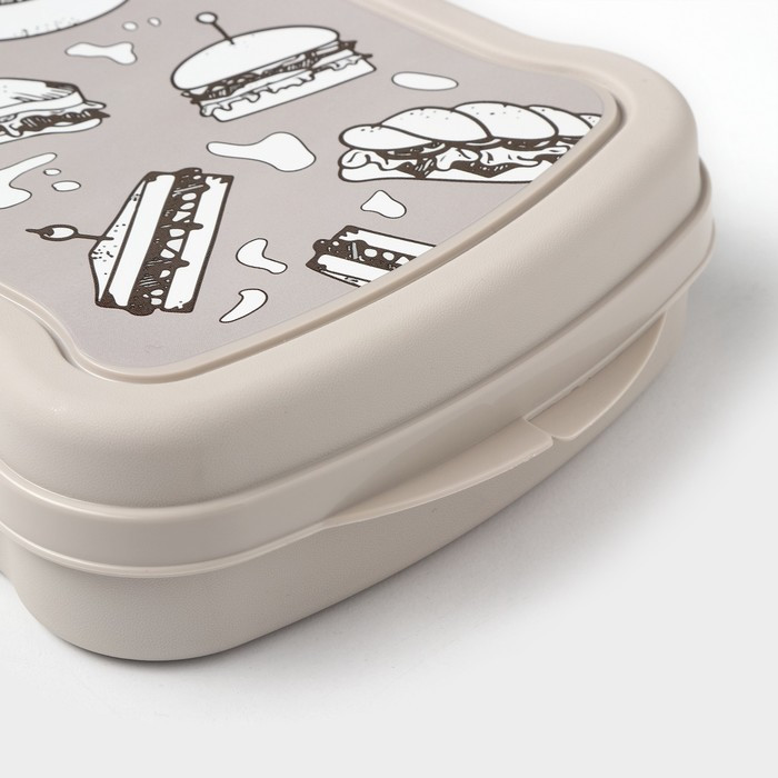 Контейнер с ярким декором повторяет форму бутерброда, закругленные края не портят сумки, пакеты и рюкзаки. Его удобно брать с собой в дорогу, на прогулку, в школу, на работу. Контейнер плотно закрывается, поэтому не нужно переживать, что крышка случайно откроется и бутерброд выпадет.