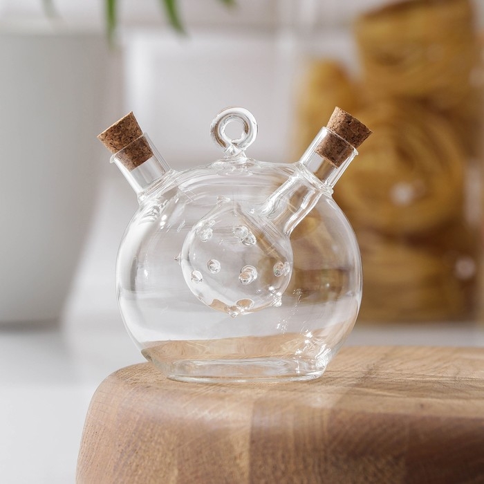 Бутыль стеклянная для соусов и масла 2 в 1 «Фьюжн. Бомбочка», 230/40 мл, 10,5×8,5×9,5 см