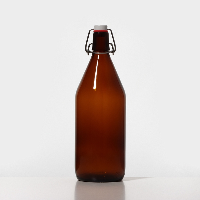 Бутылка бугельная, 1 л, с пробкой, цвет коричневый