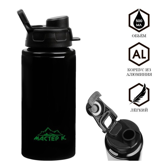 Бутылка для воды, 500 мл, "Мастер К", 19 х 7.3 см, корпус из алюминия