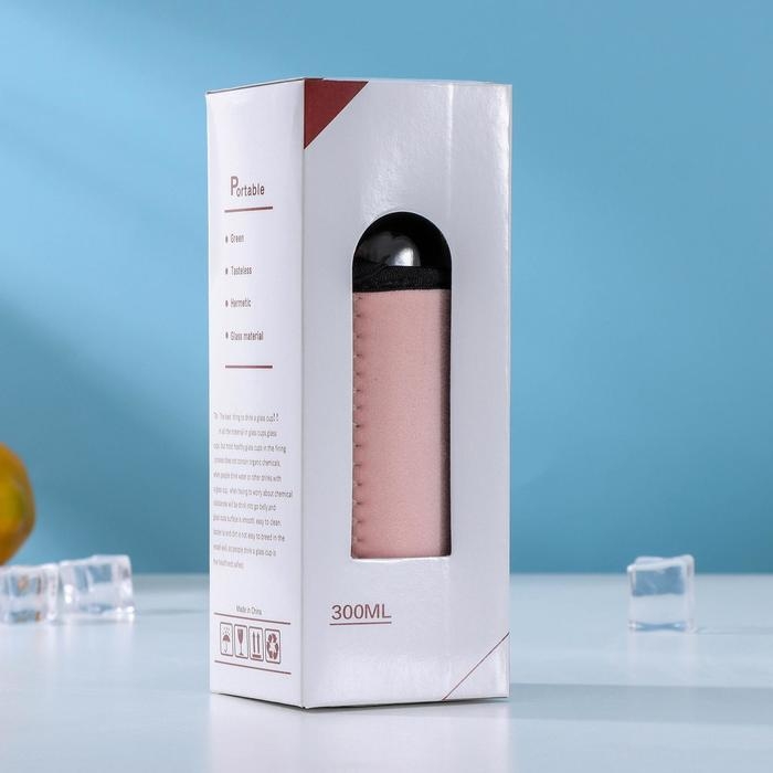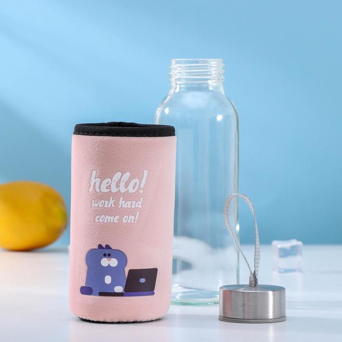 Бутылка для воды стеклянная в чехле Hello, 300 мл, h=17 см, рисунок МИКС