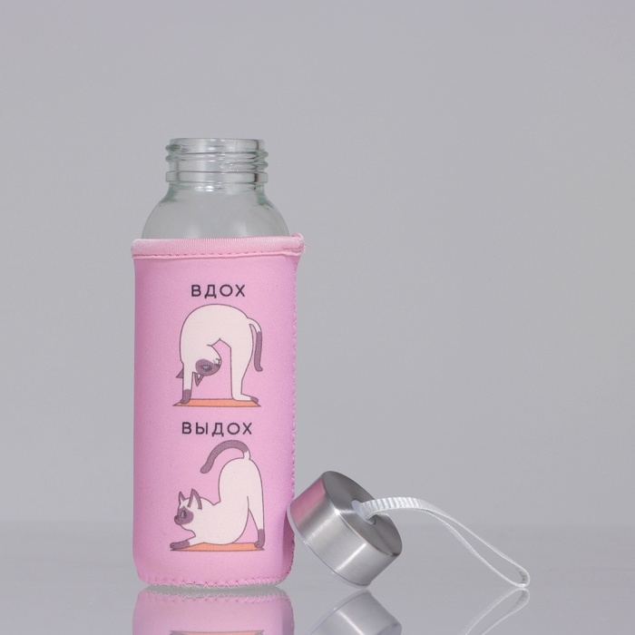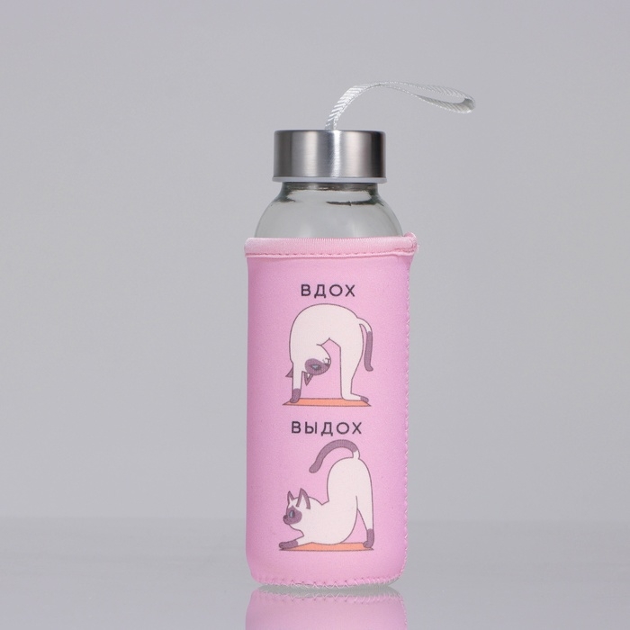 Бутылка стекло в чехле «Котики», 350 мл