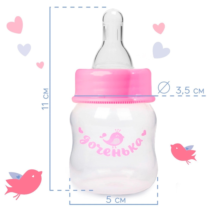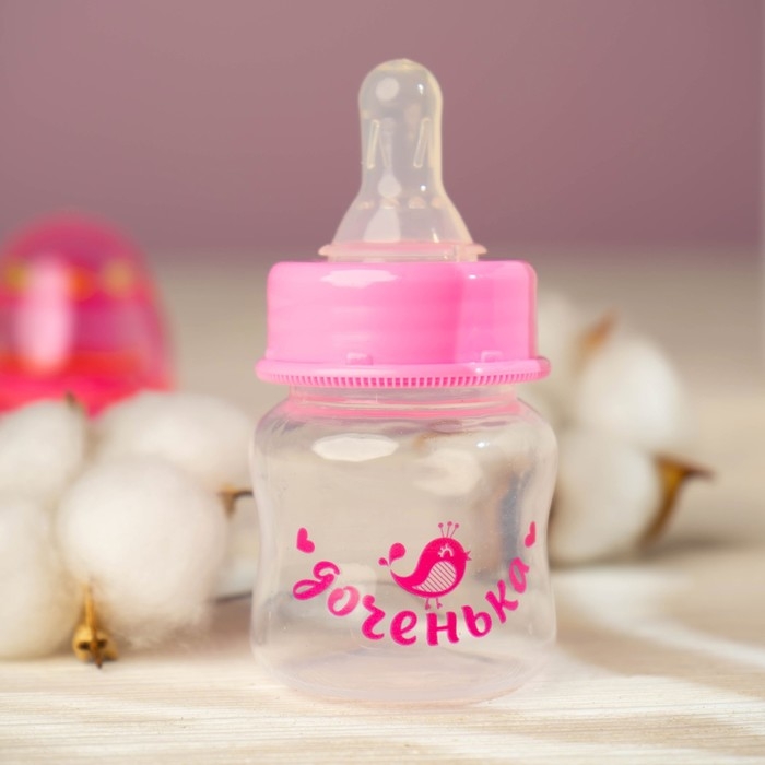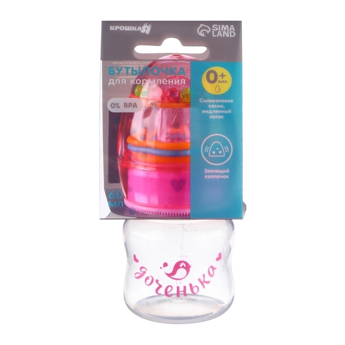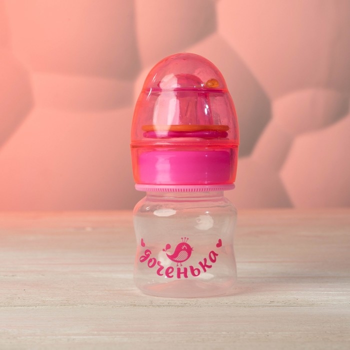 Бутылочка для кормления «Доченька», классическое горло, с погремушкой, 60 мл., от 0 мес., цвет розовый