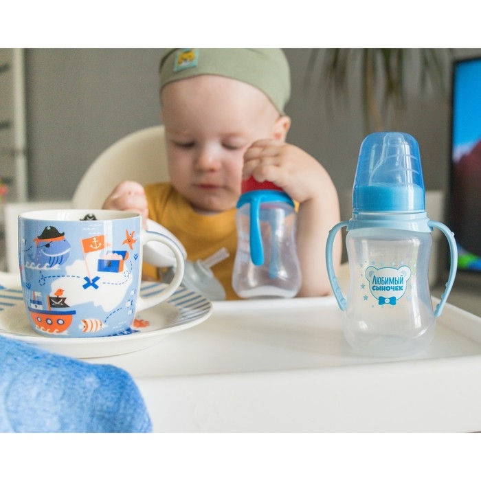 Бутылочка для кормления «Наше сокровище», классическое горло, приталенная, с ручками, 150 мл., от 0 мес., цвет бирюзовый