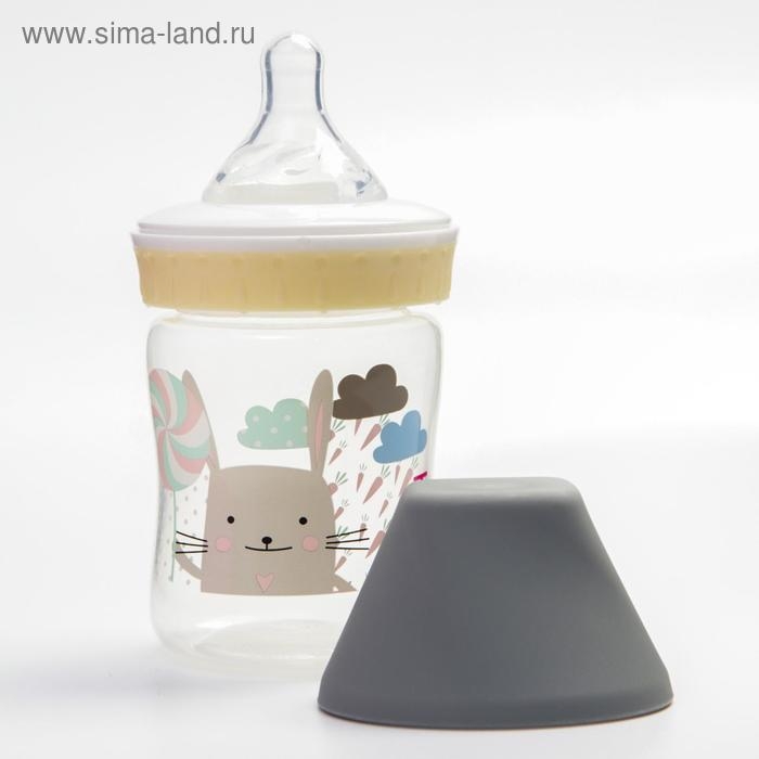 Бутылочка для кормления стекло «Зайка Полли», классическое горло, средний поток, 150 мл., от 3 мес.