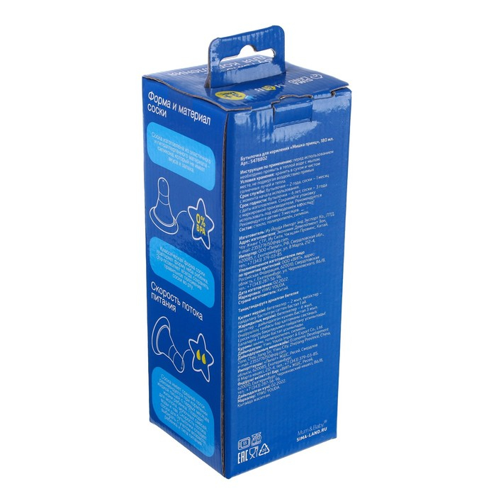 Бутылочка имеет мягкую и гибкую соску, которая не слипнется и будет удобно располагаться у малыша во рту.