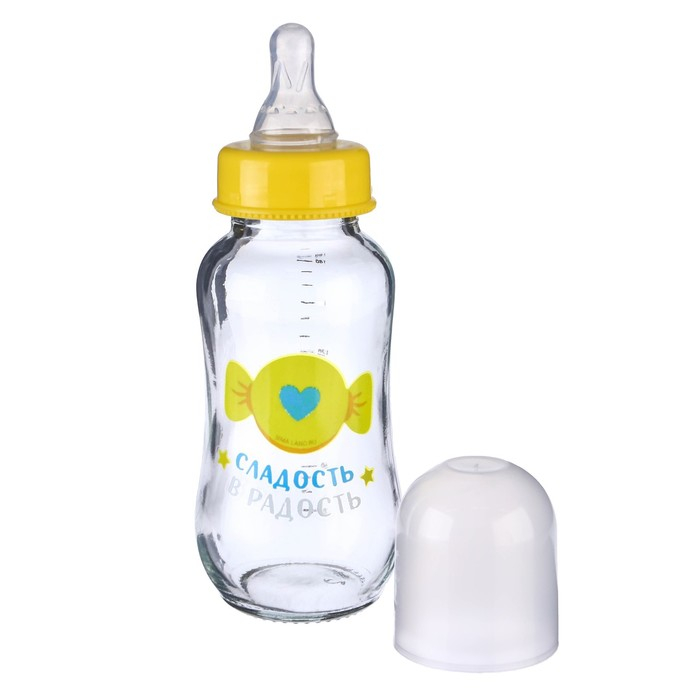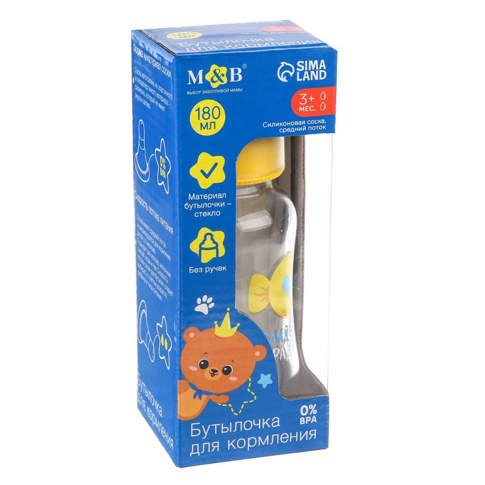 Бутылочка для кормления стекло «Мишка Принц», классическое горло, средний поток, 180 мл., от 3 мес.