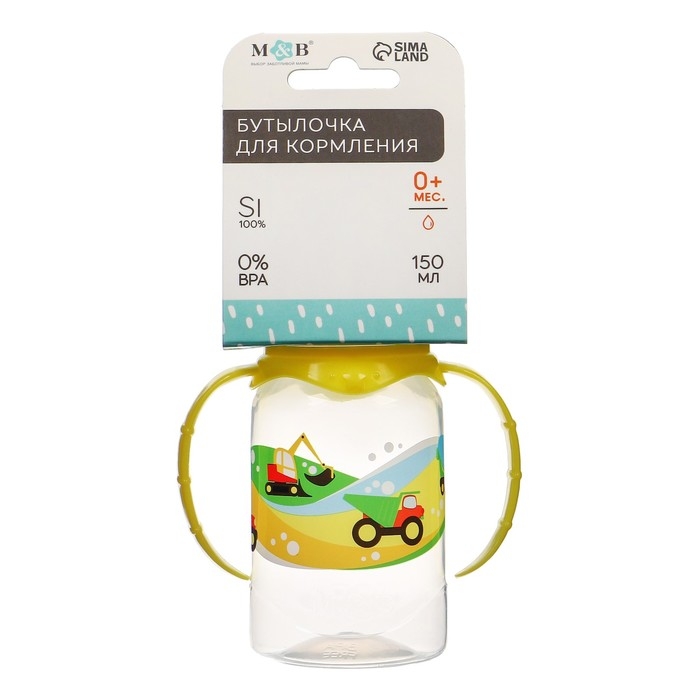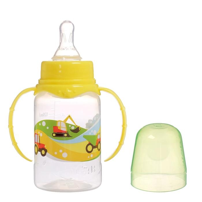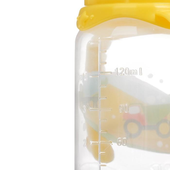 Бутылочка для кормления «Транспорт», классическое горло, с ручками, 150 мл., от 0 мес., цвет жёлтый