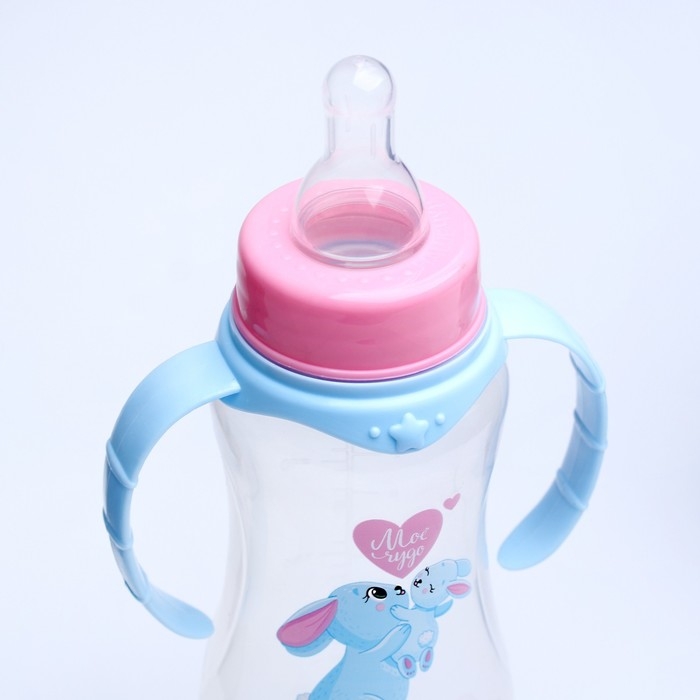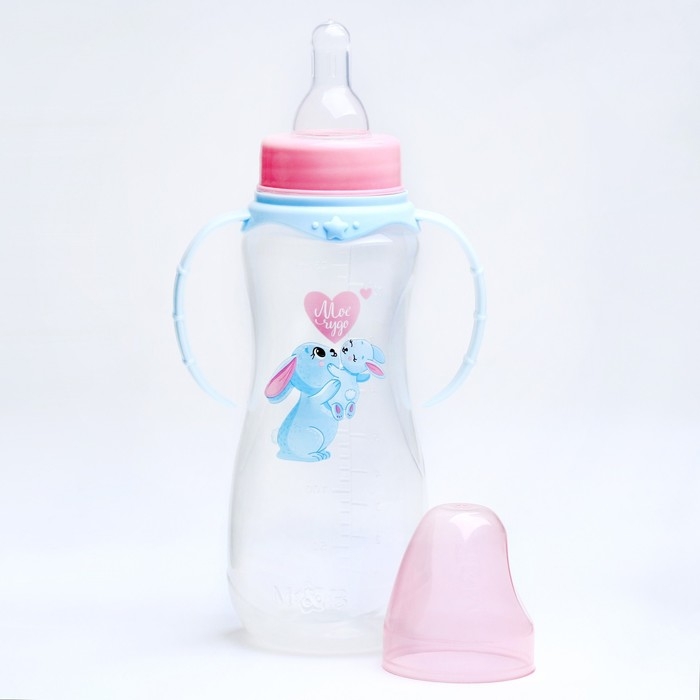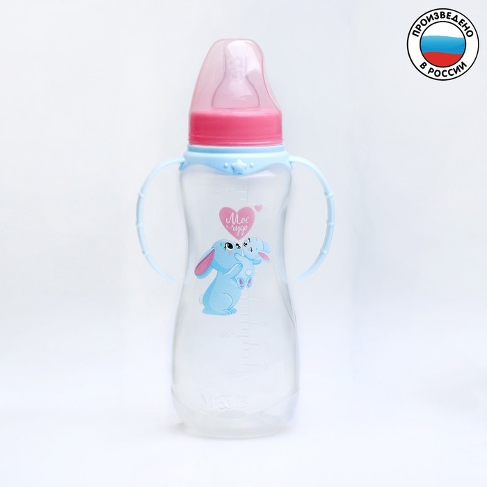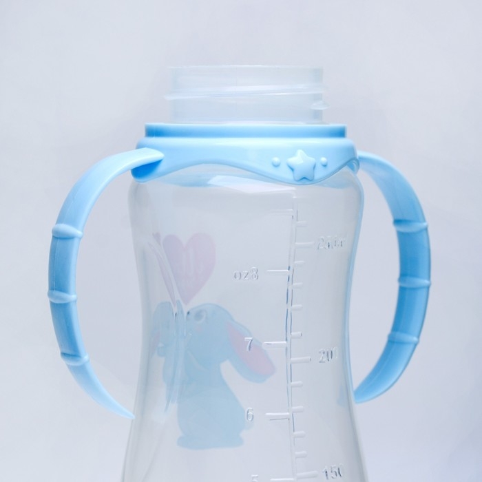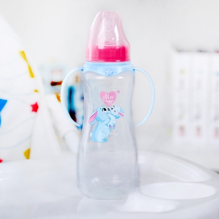 Бутылочку для кормления «Зайки: мамы и малыши», классическое горло, 250 мл., от 0 мес., приталенная, с ручками