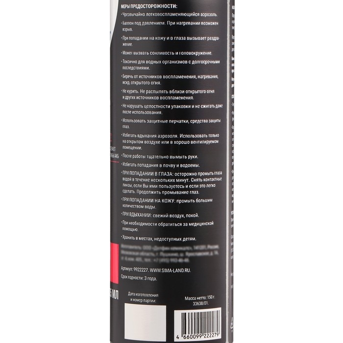 - При низких температурах, вследствие понижения давления в баллоне, эвакуация состава может быть затруднена или не происходить совсем. Для восстановления первоначальных свойств рекомендуется выдержать баллон при комнатной температуре в течение некоторого времени.